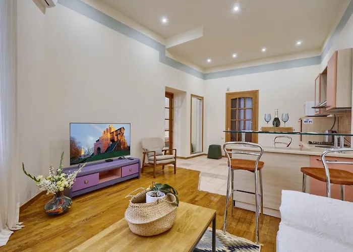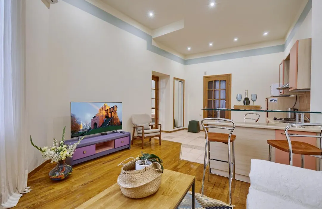 Set only 1.4 km from the Volodymyr Hill Park, the 1-room Apartments Near The Golden Gate Kyiv features a built-in kitchen for self-catering. The 55 m² apartment is located just 5 minutes on foot from the Golden Gate and in close proximity to the National Museum of Natural Sciences of Ukraine.